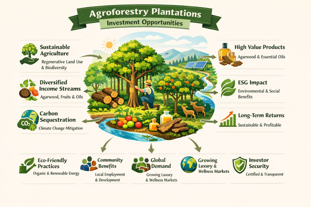 These plantations are purpose-built to produce premium aromatic woods, essential oils, and specialty botanical resources, while restoring land productivity and enhancing ecological resilience.