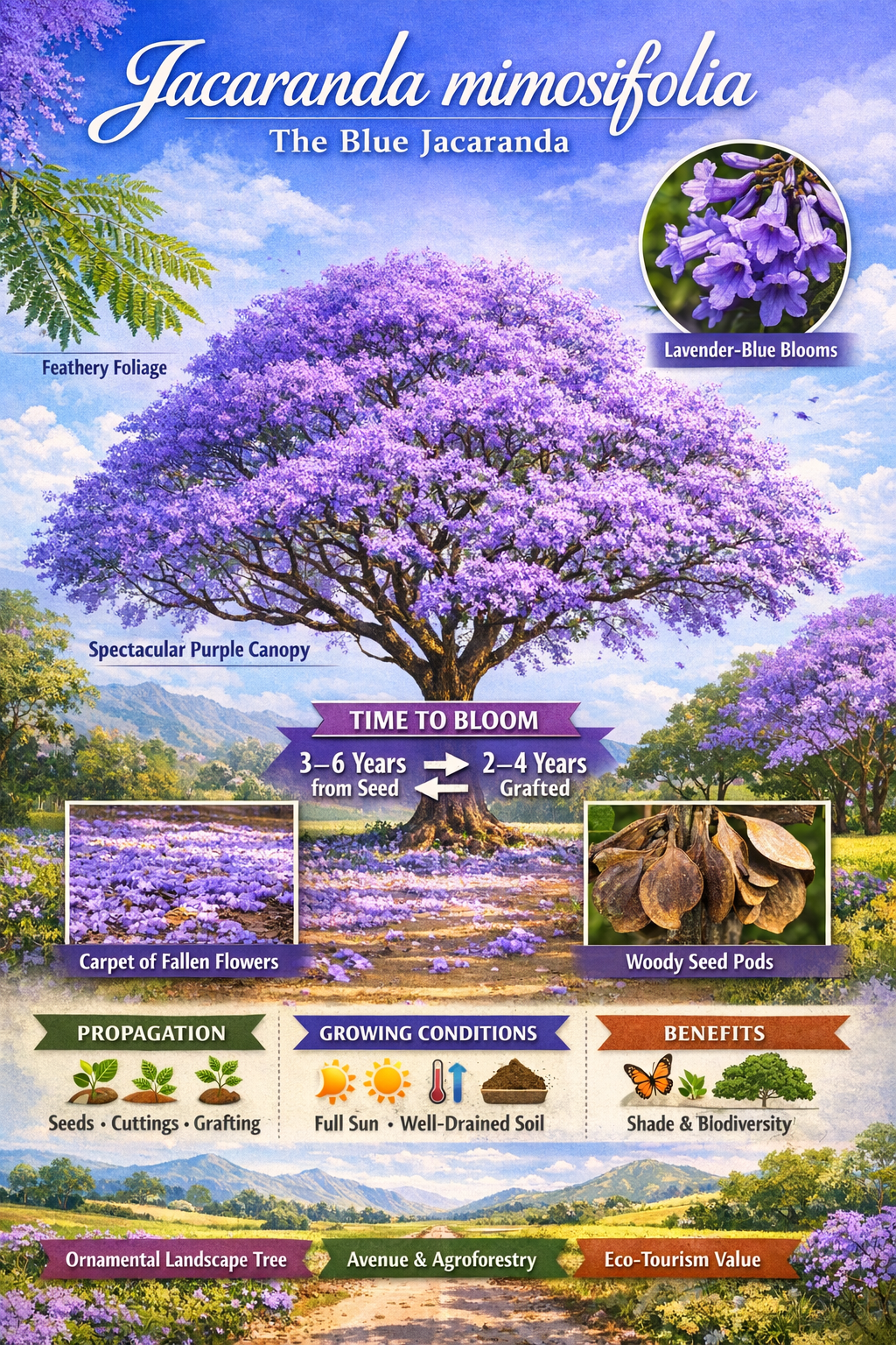 For ventures like CAPI / TerraForestry™ estates, Jacaranda mimosifolia can serve as: